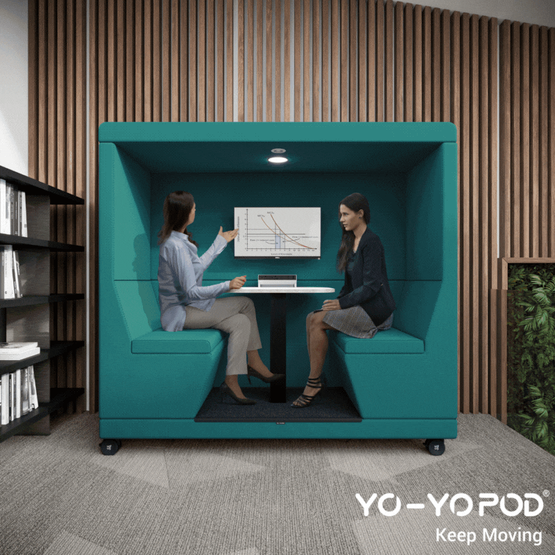 Keep Moving with purpose. Yo-Yo POD® is an acoustic booth designed by experts to be moved and re-arranged according to purpose required. Ideal for agile workplaces and collaborative work environments.